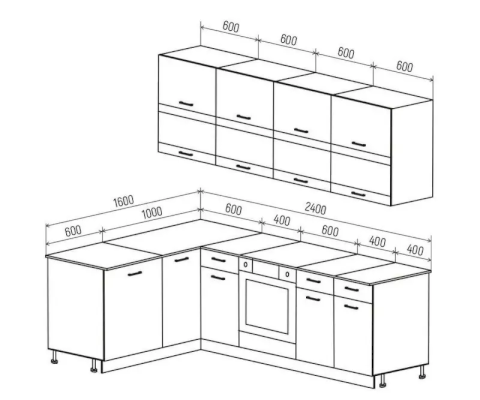 Глубина нижних шкафов со столешницей: 600 мм