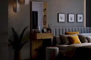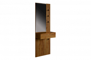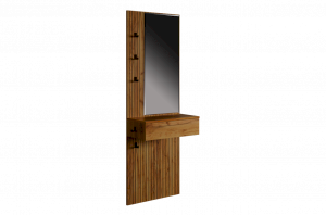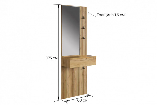 Принт, имитирующий вертикальную фрезеровку, придает зеркалу уникальный и современный вид, добавляя текстуру и глубину. Материал каркаса – ЛДСП, что обеспечивает прочность и долговечность, а также легкость в уходе.
