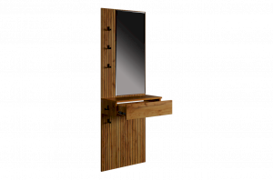Крючки предоставляют удобное место для хранения сумок или аксессуаров. Выкатной ящик служит дополнительным пространством для хранения мелочей, таких как ключи, кошелек, косметика или другие небольшие предметы.