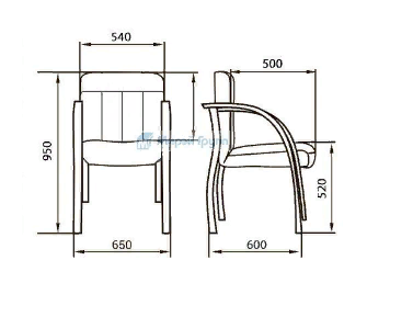 Кресло с низкой спинкой на деревянном каркасе на 4-х ножках, с подлокотниками прямоугольной замкнутой формы с мягкими накладками обитыми в цвет кресла.