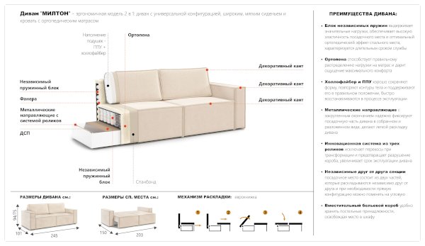 Диван Милтон (Империал) - за 60 776 руб. в Благовещенске. Купите на сайте mebelmarket-blagoveshchensk.ru или по телефону 8(800)505-30-63 уже сегодня! Уточнить наличие, комплектацию, актуальную цену можно бесплатно у менеджера ежедневно. Закажите Диван Милтон (Империал) до конца акции! Доступна покупка в кредит, рассрочку. Доставим со склада или на заказ.