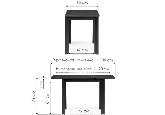 Длина разложенного столика, мм 1300