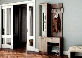 Изящная, аккуратная прихожая «Фортуна» занимает совсем немного места. Она элегантна, вместительна и удобна в эксплуатации. Модель изготовлена из недорогих качественных материалов. Ламинированное покрытие очень точно повторяет оттенки и текстуру древесины ценных пород, к которым хорошо подходит простенькая металлическая фурнитура.